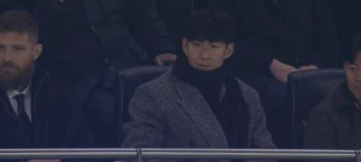 第19分钟,镜头给到场边,孙兴慜看台观战